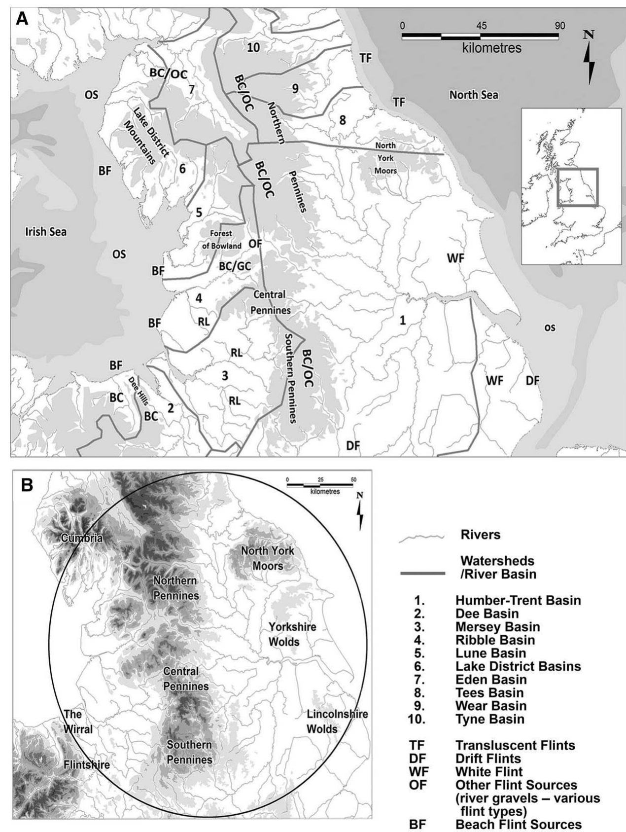 This study examines how Mesolithic lithic technology provides direct, yet often neglected, information about the Mesolithic hunter-gatherer mobility strategies in the Central Pennines (CP [also known as the South Pennines]) of northwest England. It provides a narrative which intimately links Mesolithic mobility strategies, settlement patterns, lithic raw material consumption, and tool use in the Central Pennine upland landscape and adjacent areas. The research area provides an ideal case study upon which to test current models of Mesolithic in an area with virtually no naturally occurring lithic resources (thereby implying that the Mesolithic people had to import all lithic raw materials).